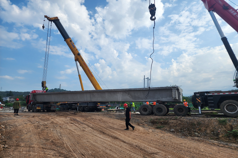 該項目是路橋集團承建的重點項目之一,始于南河污水處理廠,起點接國道108線,終點接省道205線,起止全長1.933km。周家窩中橋是該項目的重要節(jié)點工程,全長87.08米,該橋共計16片預(yù)制箱梁,預(yù)計8月15日完成所有箱梁架設(shè)。